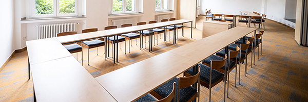 Er verfügt über drei Seminarräume, die alle mit Pinnwänden, Beamer, Flipchart und auf Wunsch